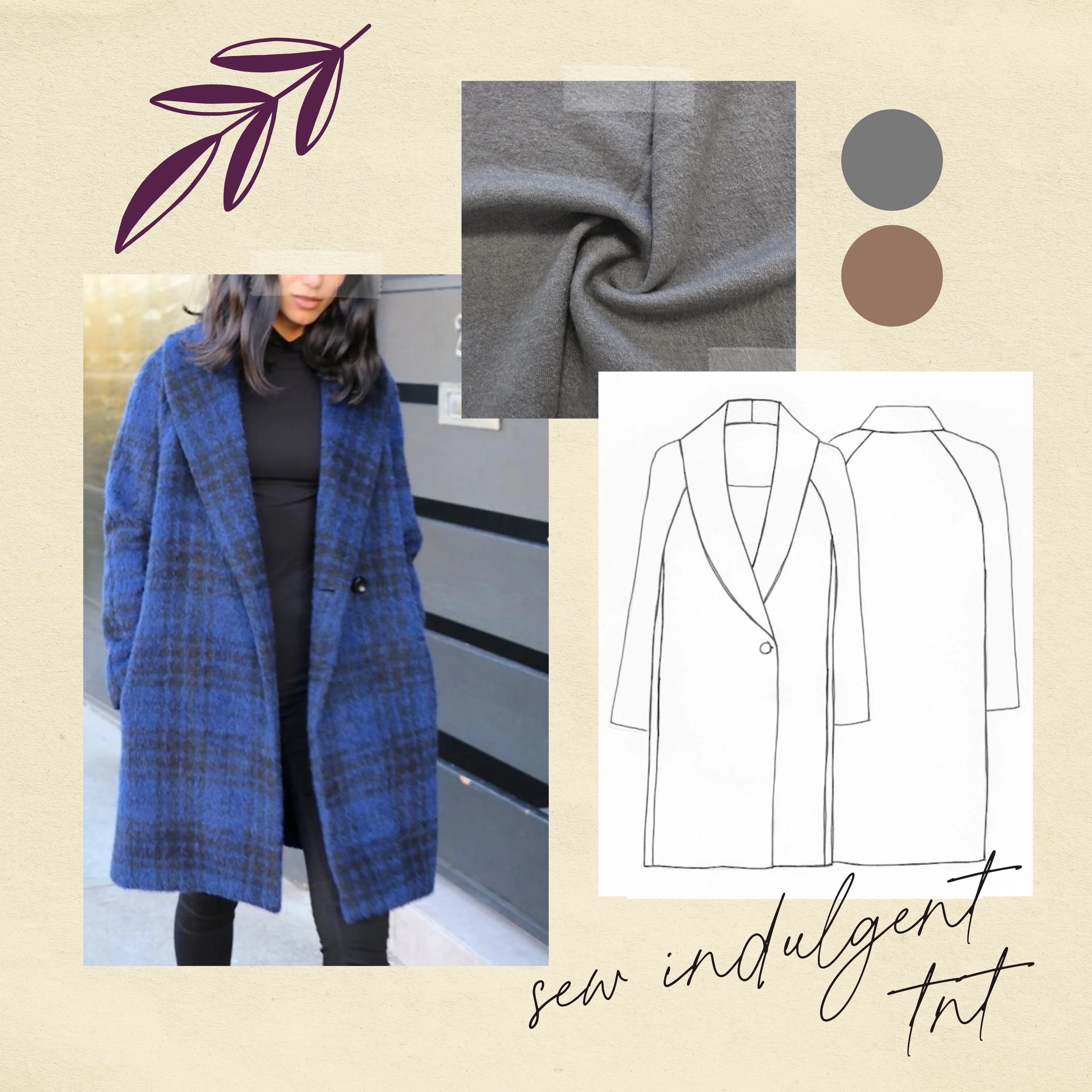 - Steel Gray Boiled Wool - Some may balk at boiled wool; it's not usually super soft and it can be quite heavy. But not this one! Its soft, pebbled texture adds visual depth, plus, the color is a true classic. It just screams out to be made into a timeless winter coat. With a nice amount of drape, this fabric will match the loose fit of this coat well and it will become your go-to outerwear for cold weather!