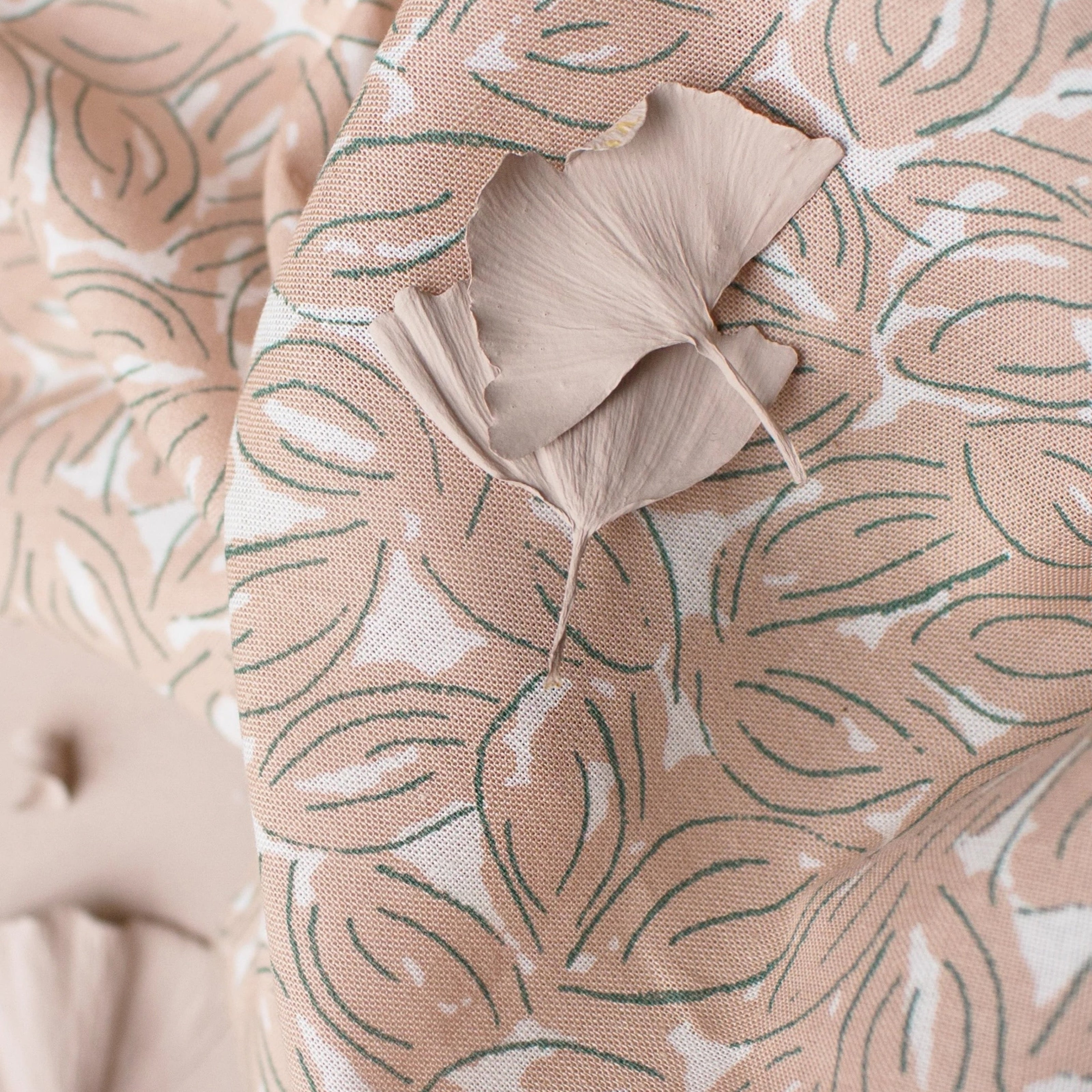- Maple Petal Printed Cotton Gauze - This gauze doesn't have the crinkled texture you may be used to. Instead, the smoother hand and dry feel of the fabric is similar to shirting, but much lighter. Printed with a muted blush pink petal pattern, like daisy petals strewn across the face of the fabric, this fabric is subtle yet stunning. Summer weight and neutral hues make this an undeniable option for this button-up!