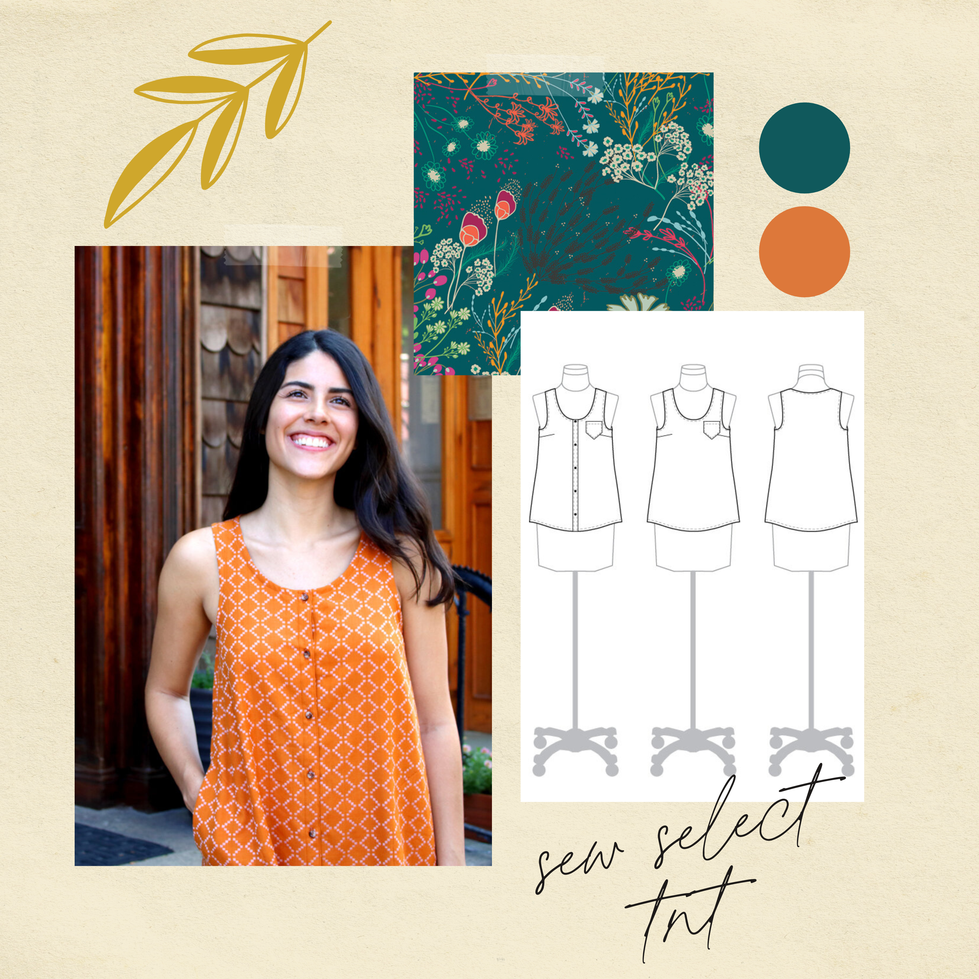 The Verano Tank is a modern tank top and dress with the option of either a solid or button front. All views are sleeveless and have bust darts and a scoop front. View A has a shirt tail hem and chest pocket, and ends at the upper hip. View B has sewn-down side seam pockets and a shirt tail hem that lands just below the knee. Pockets can be added or subtracted to any view as desired. More...