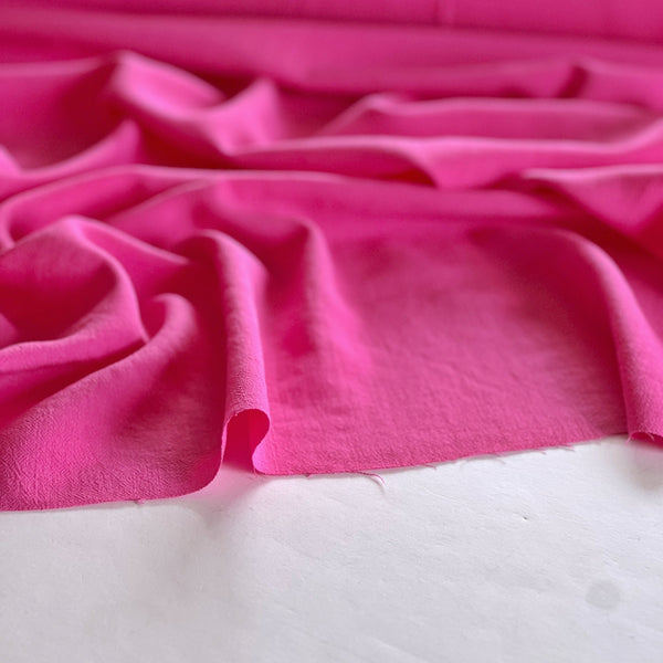 With the look of silk noil, breathability of linen, and softness of rayon, this fabric has it all! The surface has a nubbly texture that creates a rustic feel, making the fabric great for closet staples such as loose tops, shift dresses and relaxed fit pants. Lighter, with a more fluid drape, than our heavier Silky Noil, this is a perfect summer weight fabric. Honestly, this may become your go-to woven for many of your tried and true woven patterns.