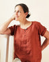 The original design is version #1, plain and simple. Version #2 offers a little visual interest at the front with a split centre and keyhole button closure. There are two sleeve options – short sleeves and 3/4-length sleeves – and both work with either version #1 or version #2.